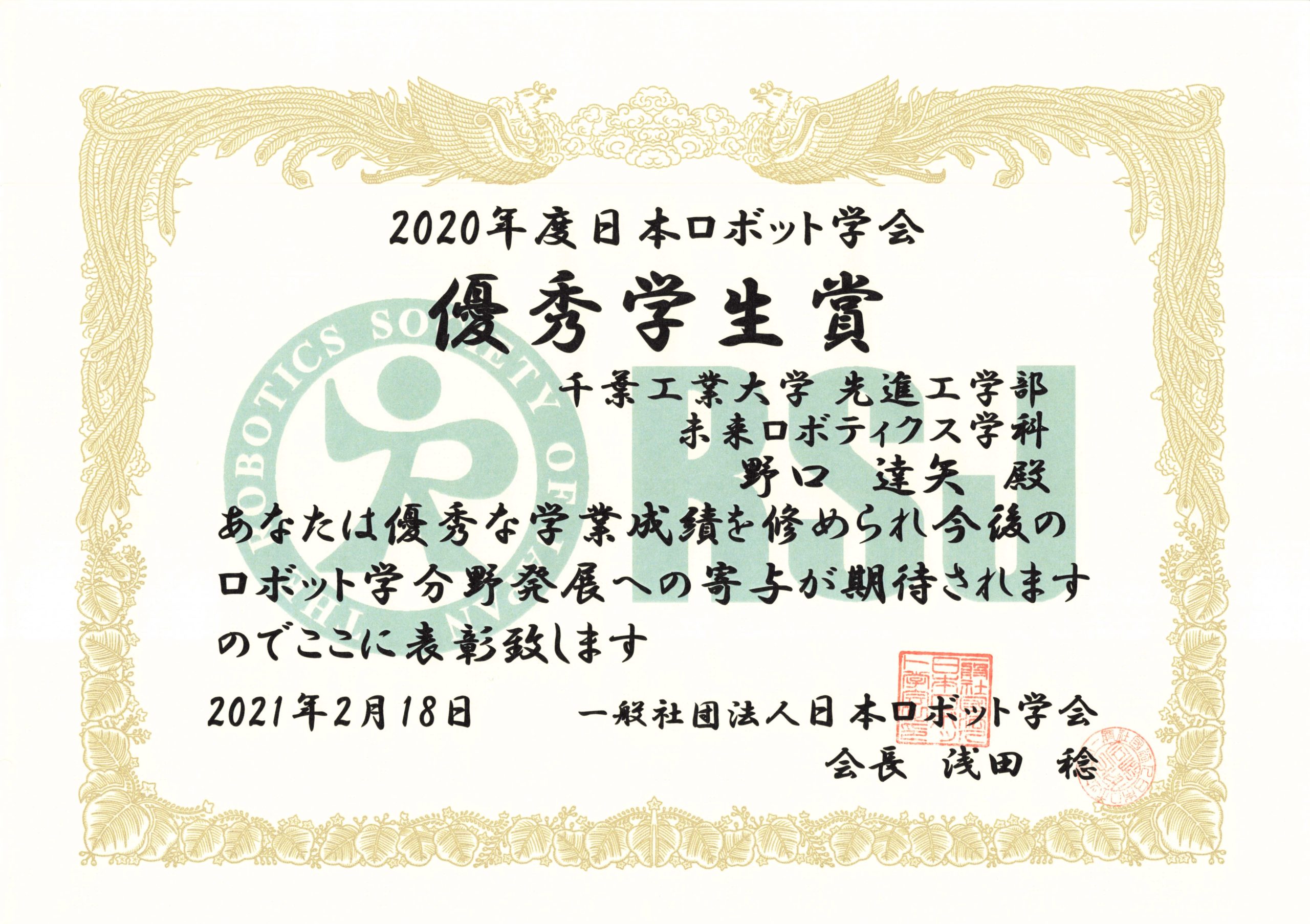 - 日本ロボット学会 優秀学生賞:野口 達也 さん