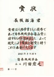 - 日本機械学会 畠山賞:長坂 拓海 さん