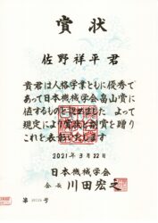 - 日本機械学会 畠山賞:佐野 祥平 さん