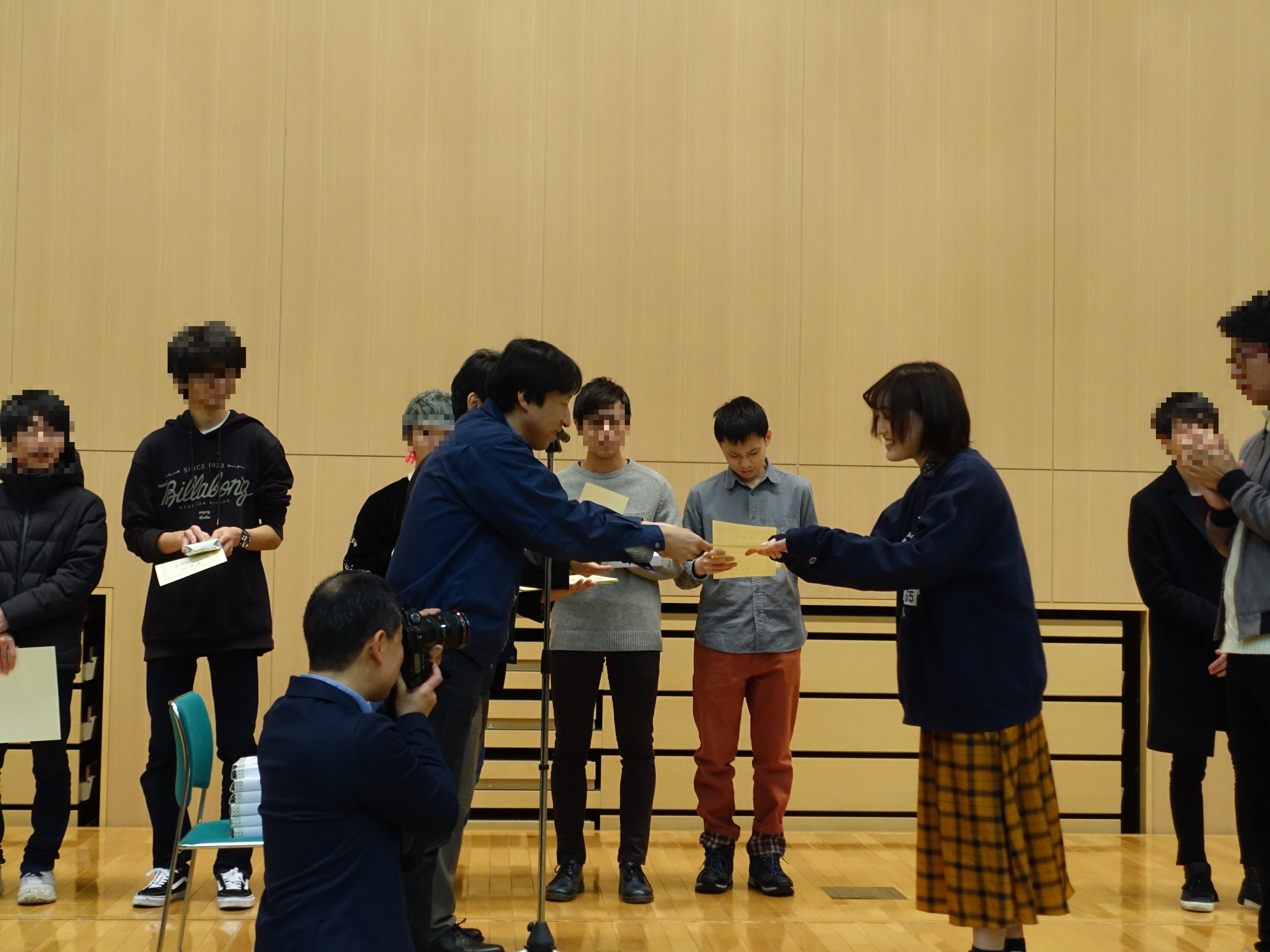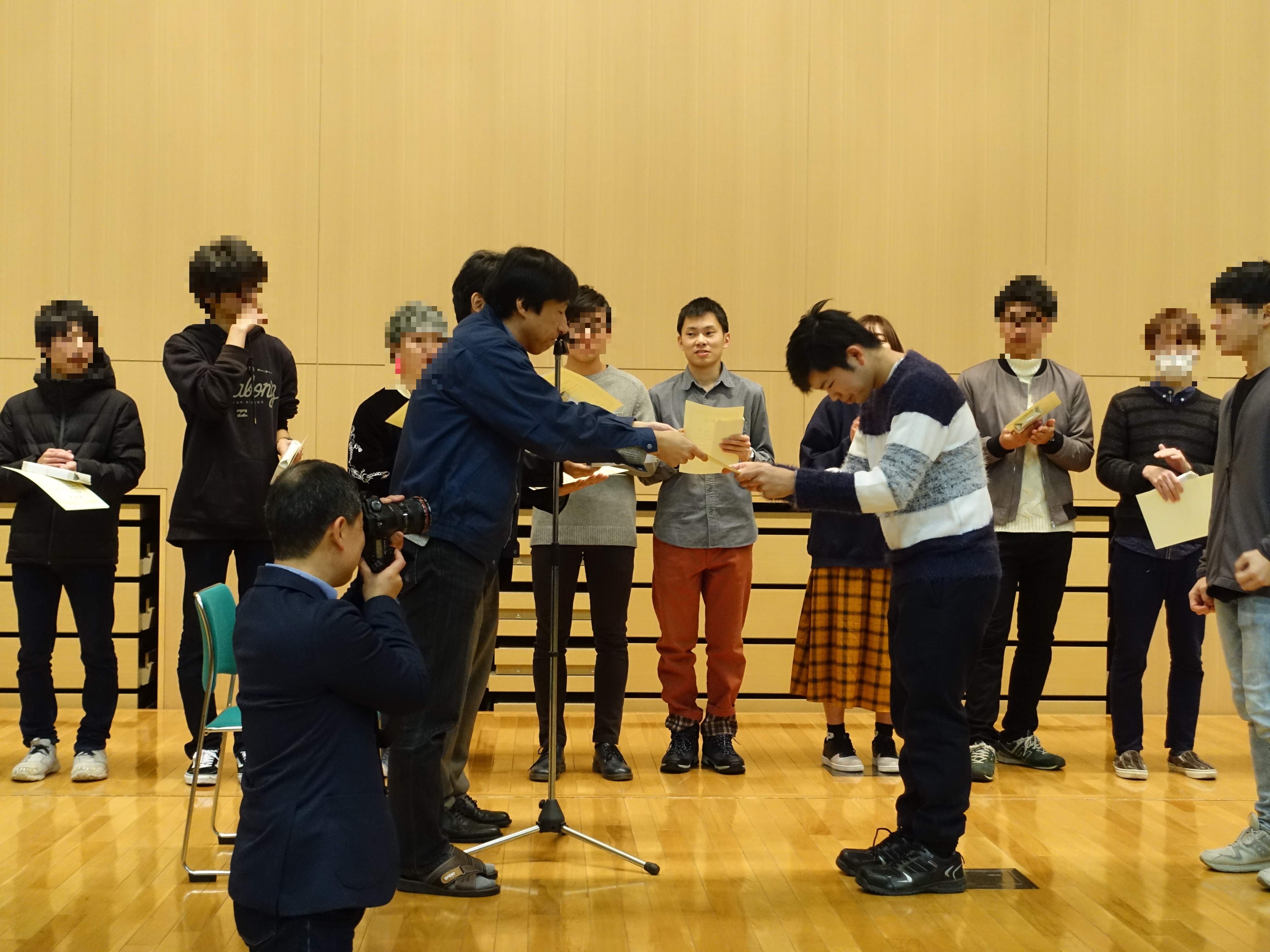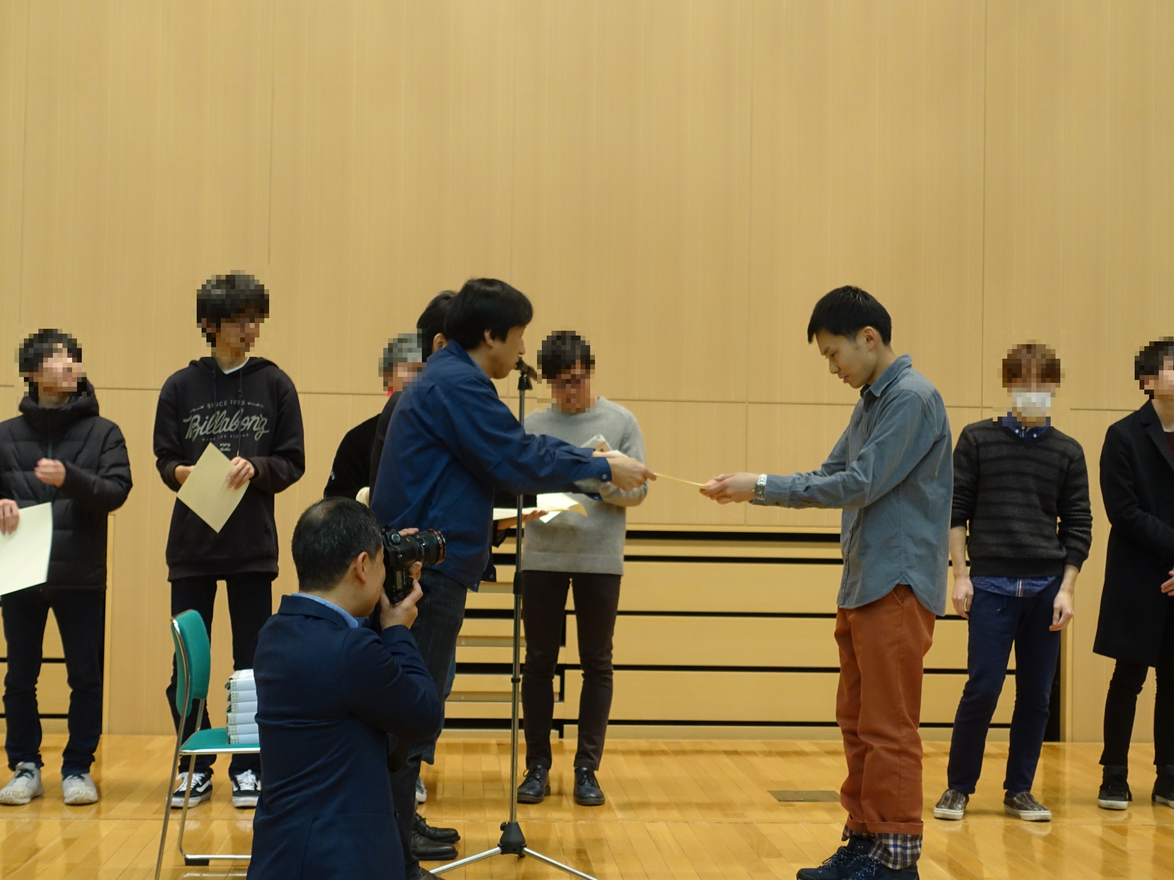 2019年2月15日 / 最終更新日時 : 2022年10月10日 H. FUJII イベント B3学生3名が表彰されました2月15日,未来ロボティクスフォーラムが津田沼キャンパス2号館大会議室で開催され,2018年度の後期研究において優秀な業績を修めた学部3年生に対して「千葉工業大学未来ロボティクス学科優秀発表賞」が授与されました.畠山さん(B3)川又さん(B3)金さん(B3)藤井研からは,以下の3名が表彰されました.川又 健太さん金 喜正さん畠山 佑太さんおめでとうございます.